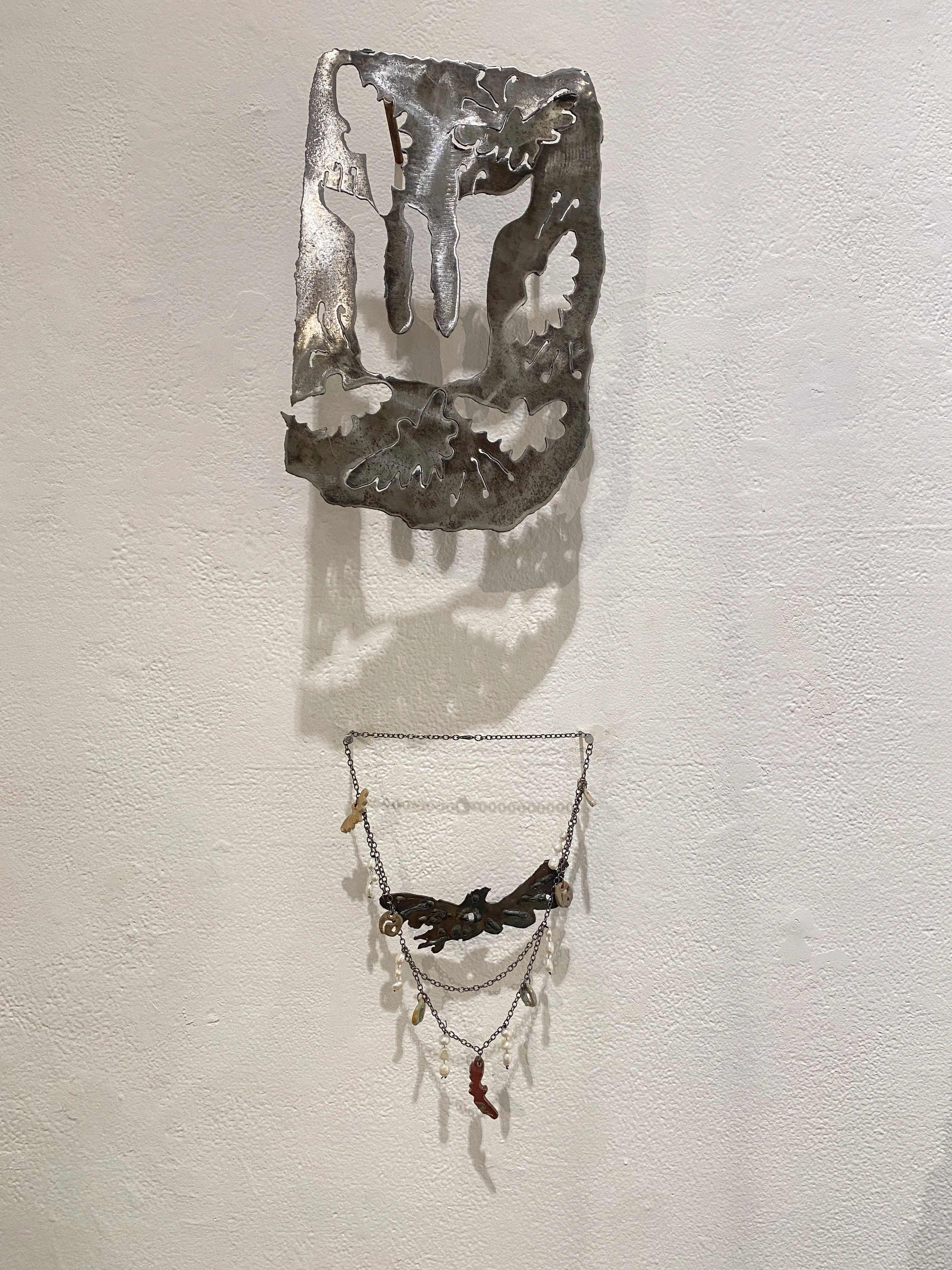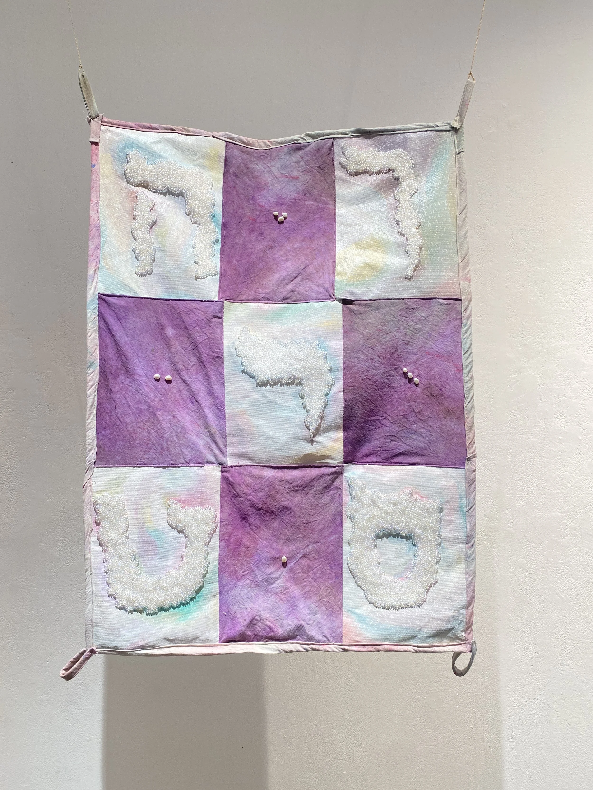 I work interdisciplinarily, and seek to continually explore new mediums to find the most engaging and honest way to communicate each project. I have an ongoing fascination with text and lettering. Many of the symbols used throughout this body of work are an abstraction of yiddish lettering, a meditation on language loss, assimilation, and ancestral memory. My relationship to text also comes from my work as an organizer and political artist.
